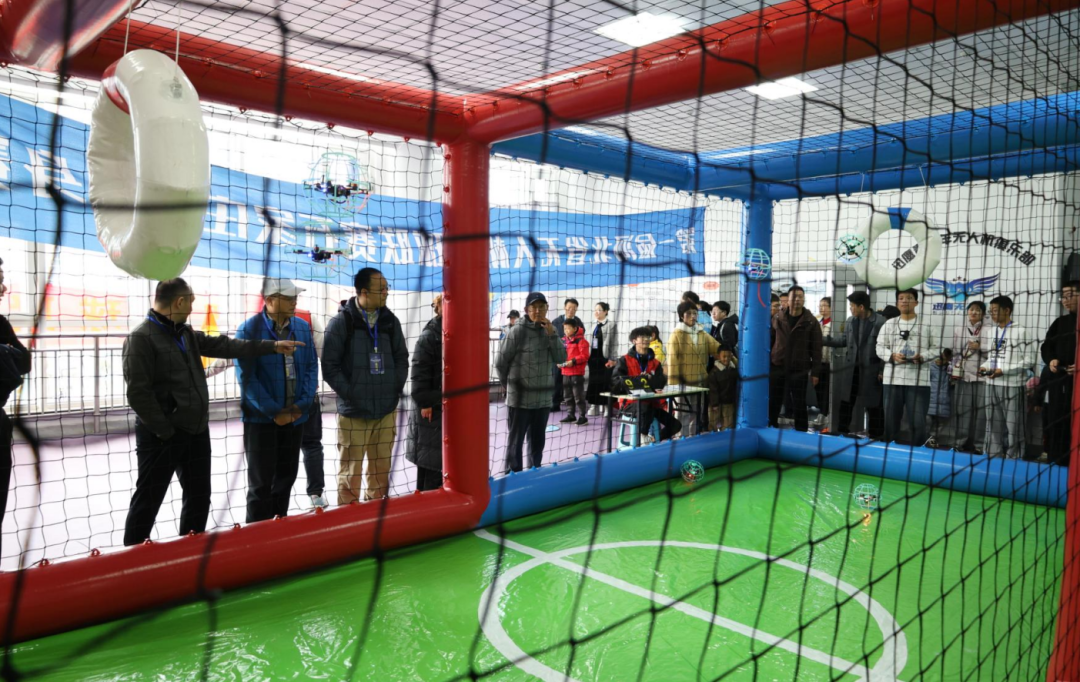赛事设置无人机足球3V3团队对抗赛和“超级进球手”个人挑战赛两大项目,组别兼顾专业竞技与大众参与,覆盖青少年至成人不同年龄层、不同技术水平的参赛群体。在无人机足球3V3团队对抗赛中,各队展现出默契的团队协作与战术执行能力——无人机编队如流萤般穿梭球场,多次上演精彩攻防转换;“超级进球手”个人挑战赛则重点考验选手操控精准度,选手们全神贯注投入比赛,专注操控的身影与无人机高速飞行的嗡鸣声交织,构成独特的科技体育竞技场景,展现出扎实的技术功底与竞技素养。