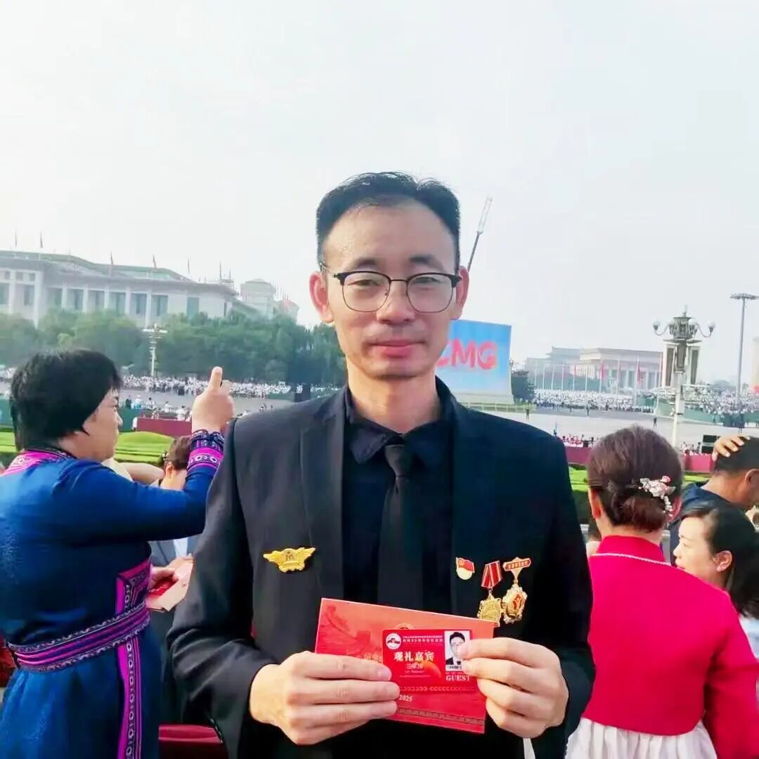 兰学渊老师是2024年全国模范教师、中国航空学会首批航空科普专家、河北省航空航天学会常务理事、张家口市科技创新教育学会副会长。他长期致力于科技创新教育,为留守儿童筑梦,带领他们在航模科技领域取得了优异成绩。他拿出自己的积蓄为学生购买模型器材,利用假期到北京学习先进技术,还自掏腰包带学生参加各类比赛。在他的努力下,兰老师带领的孩子们在全省航模比赛、国际无人飞行器创新设计大赛、全国青少年航天创新大赛、全国青少年无人机大赛等赛事中屡获佳绩 。今天,他在天安门广场向祖国报到;此刻,河北航空航天的精神在阅兵方阵中飘扬!