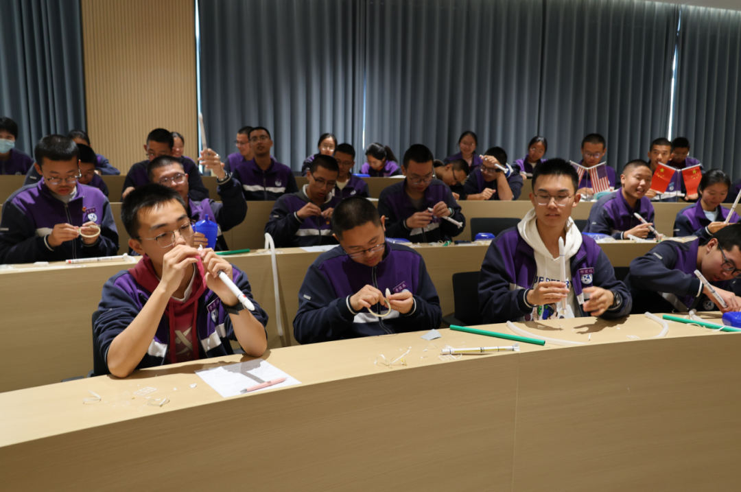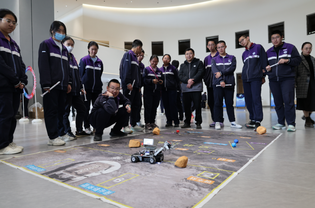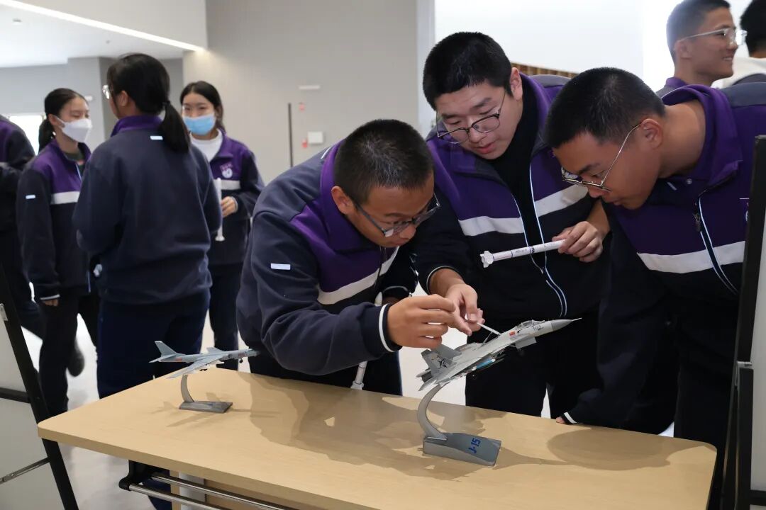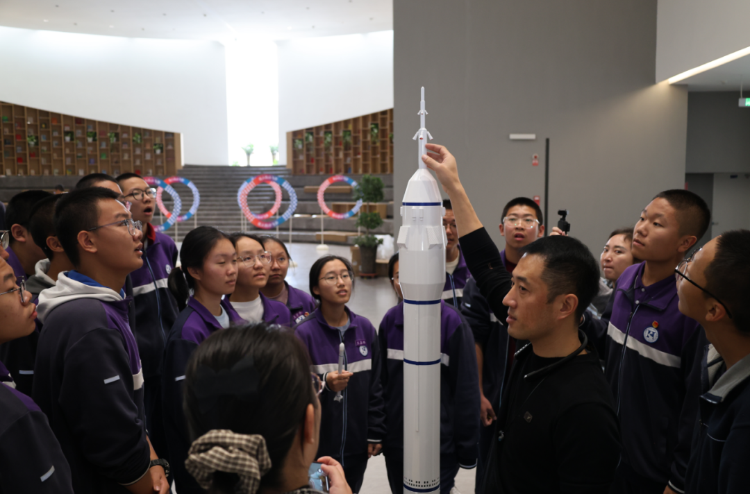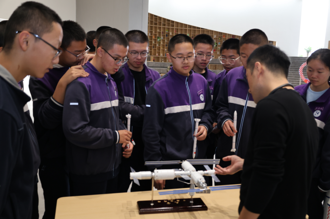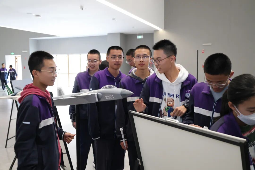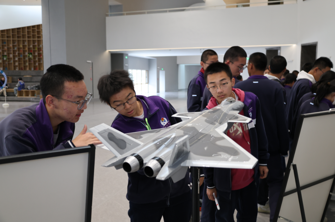 模型展览区无疑是本次校园科普活动最聚人气的焦点,人流如织,气氛热烈。长征系列运载火箭、北斗导航卫星、"天宫号"空间站、歼-20战斗机、C919大飞机等高仿真模型整齐陈列。特别值得一提的是,这些模型得科普讲解员都是本校得学生,他们在经过培训学习后,自信从容地为同学们介绍各类模型的科技特点和研发背景,在传播科学知识的同时,也展现了新时代青少年的科学素养。