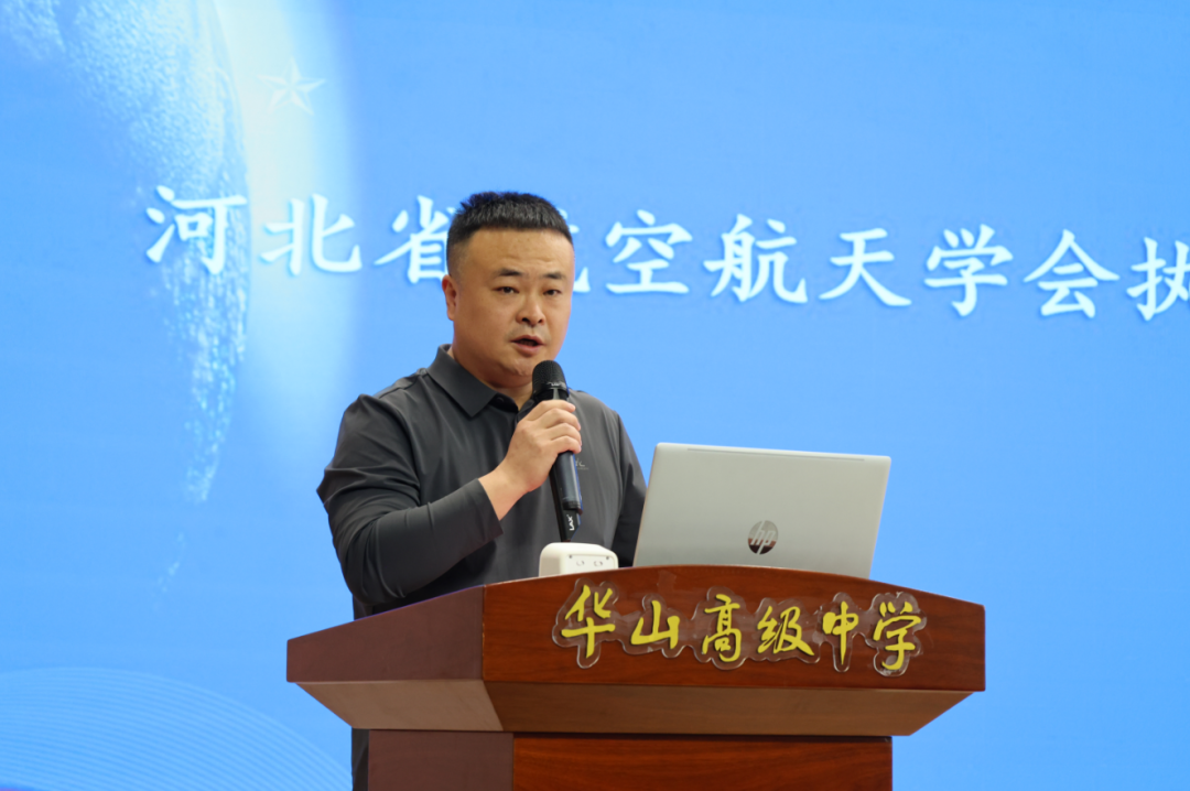随后,"航空航天科普角"援建仪式环节,河北省航空航天学会执行秘书长吴红军代表援助单位,向华山高级中学正式移交了援建物资,包括航空航天模型、科普图书、教学器材等。这些物资将用于在校内建设专门的航空航天科普学习空间,为学生们提供常态化的科普教育平台。