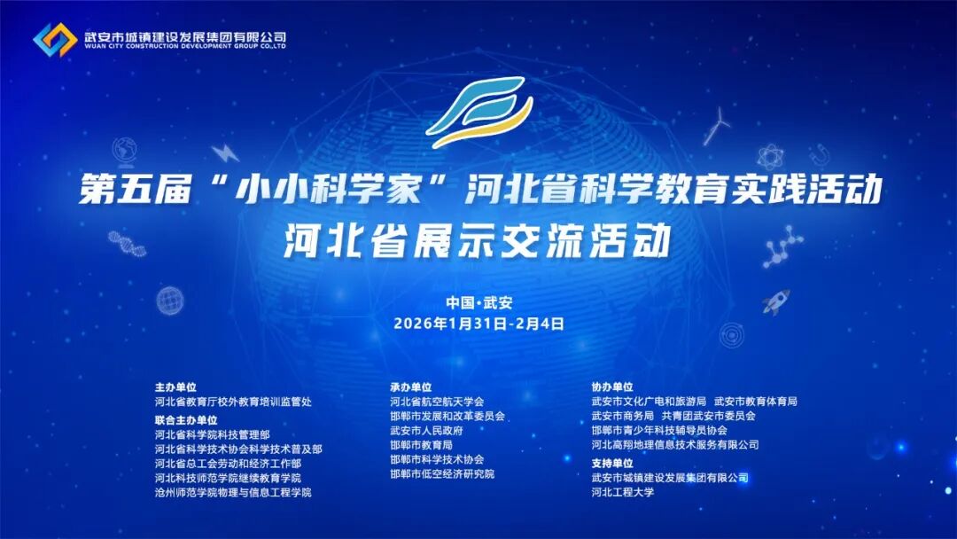 2026年2月1日,第五届“小小科学家”河北省科学教育实践活动河北省展示交流活动在武安市东太行景区晨曦酒店盛大开幕。此次活动吸引了来自河北省11个设区市及定州、辛集、雄安新区的7000余名参赛选手。河北省教育厅、河北省科学院、河北省总工会、河北省科学技术协会、河北科技师范学院、沧州师范学院、河北省航空航天学会、邯郸市科学技术协会、武安市人民政府等单位的相关领导出席开幕式,对活动的举办给予了高度评价和赞誉。与此同时,位于武安市区的安瑞小学和石家庄市第四十中学的分赛场也同步启动。