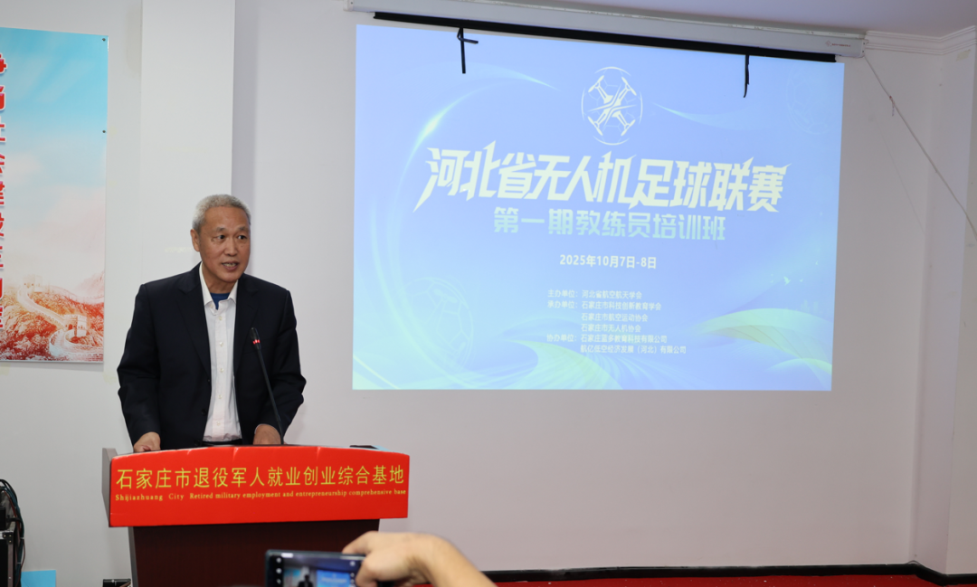 在开班仪式上,河北省航空航天学会副会长兼秘书长王忠秋、石家庄市科技创新教育学会党支部书记兼副会长王一报先后发表致辞。共同强调,本次活动旨在助力国家“低空经济”发展战略的人才培养,进一步推动无人机足球运动在河北的普及与发展,全面提升教练员、裁判员的专业技术、教学水平和执裁能力,为第一届河北省无人机足球联赛的顺利举办提供坚实保障。