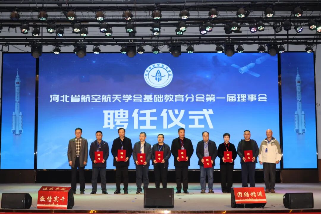 基础教育分会成立大会上,首先,河北省航空航天学会副会长兼秘书长王忠秋宣读《河北省航空航天学会关于准予基础教育分会成立登记的批复》。随后大会审议并通过了《河北省航空航天学会基础教育分会工作规程(草案)》,选举产生了分会第一届理事会理事、常务理事、负责人,其中杨雅清当选理事长、张国良当选常务副理事长、张莉当选秘书长。现场分别举行河北省航空航天学会基础教育分会揭牌仪式和第一届理事会聘任仪式。