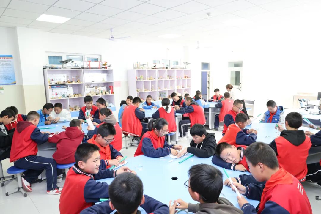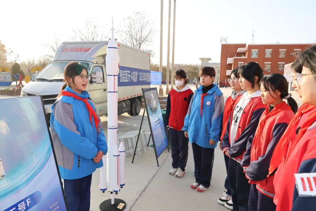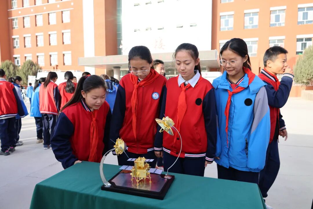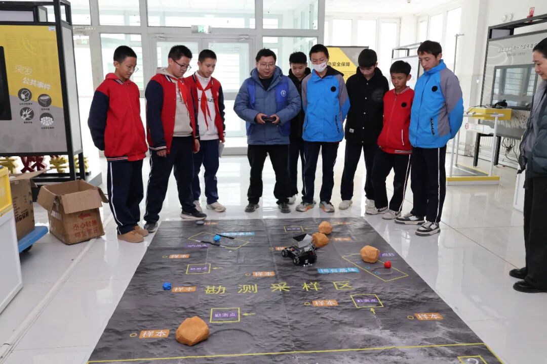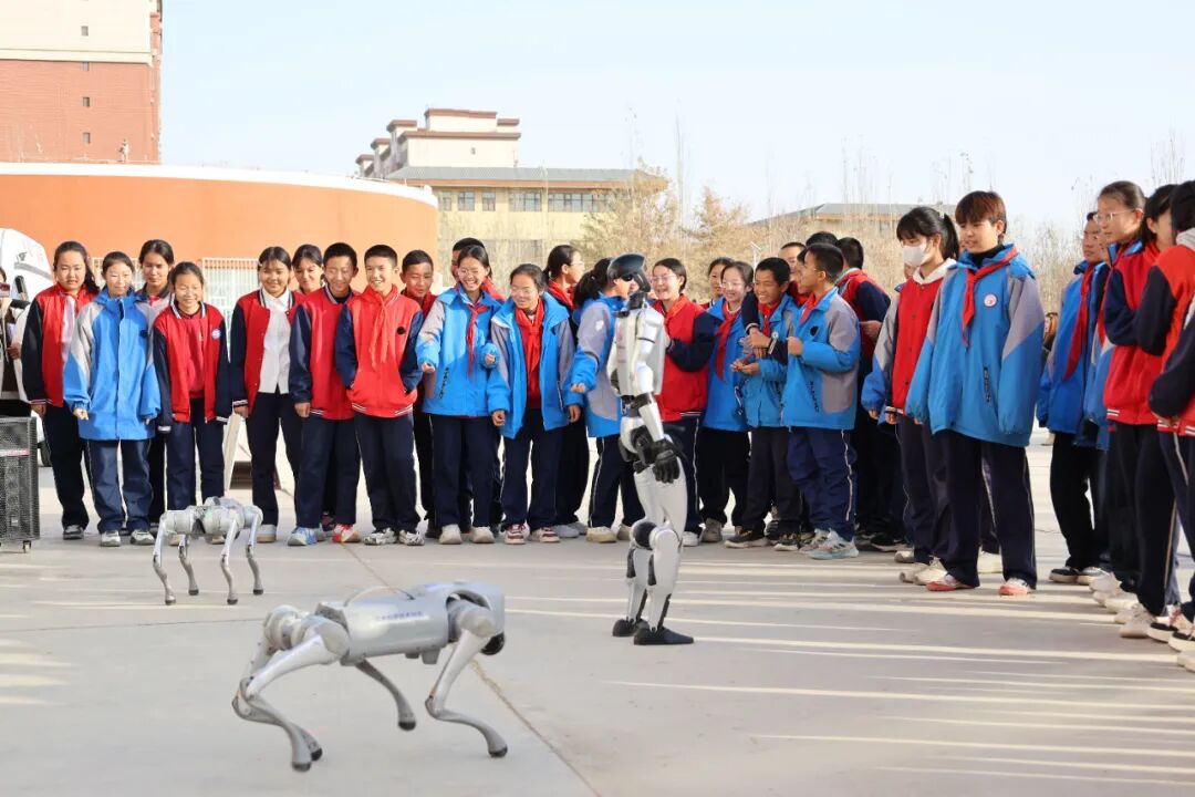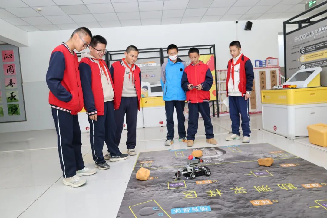展览区内,航空航天模型与人工智能装备相得益彰。长征系列火箭、北斗卫星等模型展现了中国航天的辉煌成就,而智能机器狗、人形机器人等AI设备则展示了科技发展的最新成果。学生讲解员们自信专业地为同学们解说展品背后的科学原理,展现了新时代青少年的科学素养。