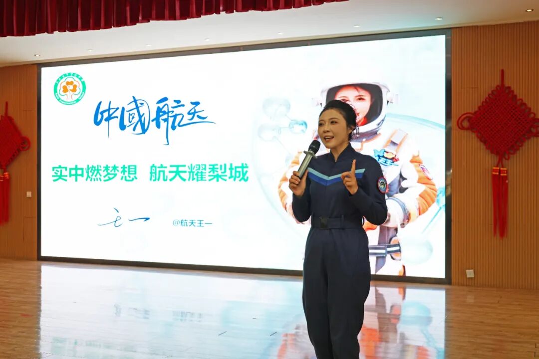 科普讲座中,中国载人航天工程专家王一为师生们带来了《实中燃梦想 航天耀梨城》专题讲座。王老师以生动的语言和丰富的实例,向同学们展示了航天科技的独特魅力。此次讲座聚焦太空农业这一前沿领域,王老师深入浅出地讲解了太空农业的发展现状、创新成果以及未来前景,让同学们对这一陌生又新奇的领域有了全新的认识。不仅如此,为了进一步拉近与同学们的距离,激发大家的探索热情,王老师还在现场组织了心理游戏互动环节,同学们积极参与,现场气氛热烈非凡。