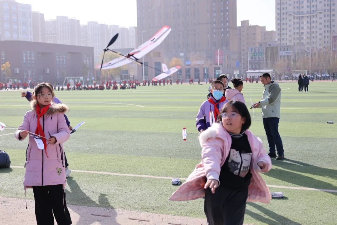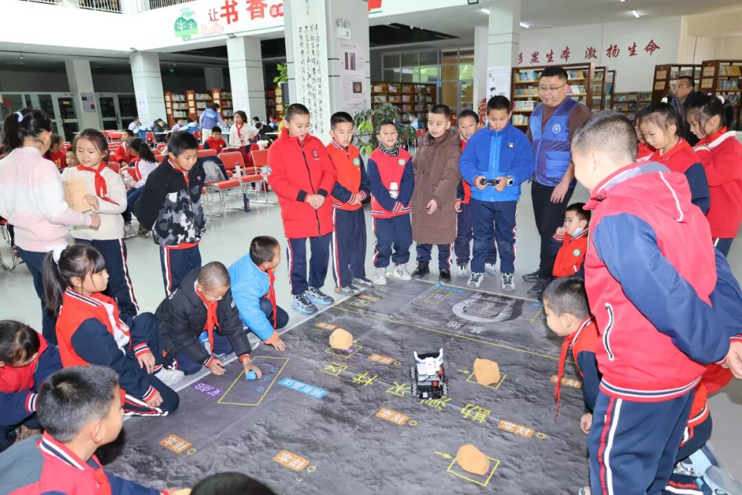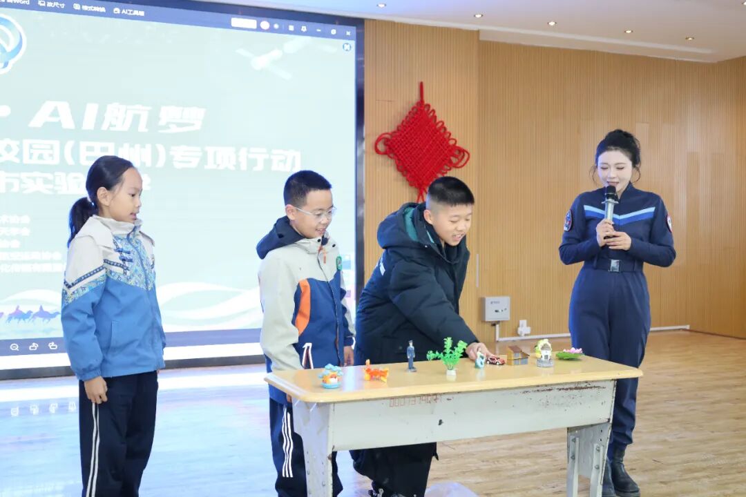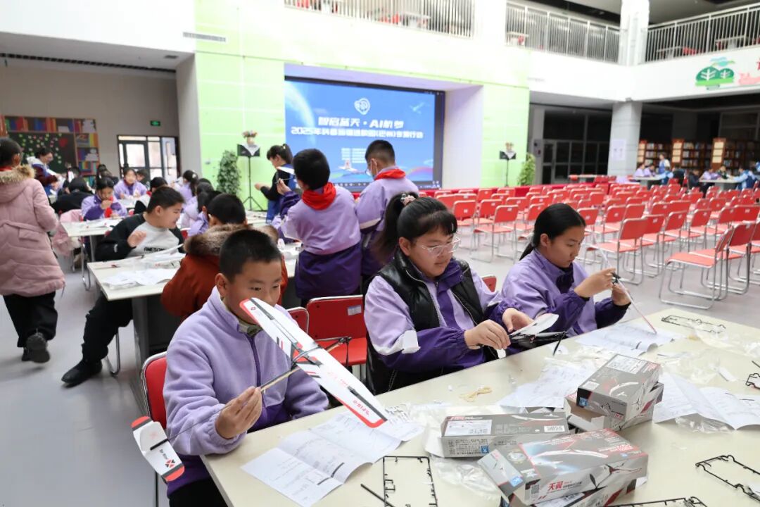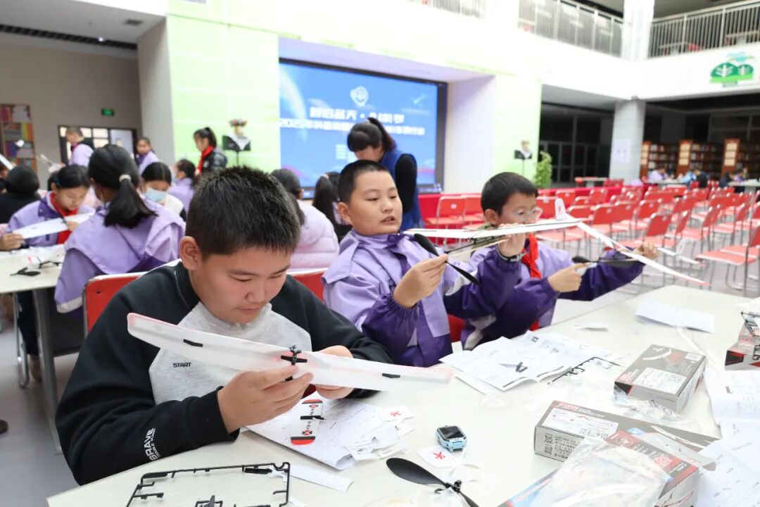 展览区,智能机器人展示成为亮点。机器狗精准完成各项指令动作,展现出卓越的运动性能;人形机器人则与学生们展开亲切互动,完成握手、拥抱等多样化展示。这些智能设备与航空航天模型相得益彰,为学生们打造了一个沉浸式的科技体验空间。