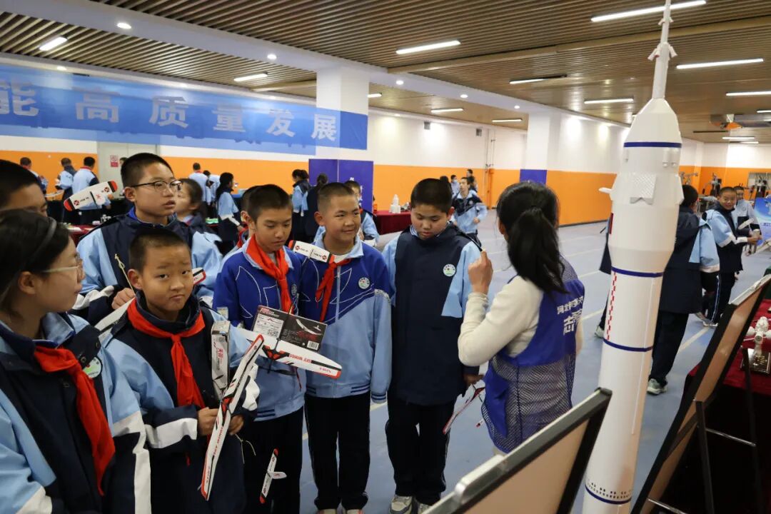航空航天模型展区同样人气爆棚。一架架精致的飞机模型、一枚枚逼真的火箭模型整齐排列,仿佛在诉说着人类探索天空与宇宙的伟大历程。孩子们仔细端详着每一件模型,认真聆听志愿者讲解模型背后的设计原理和历史故事,对航空航天知识有了更直观、更深入的了解。