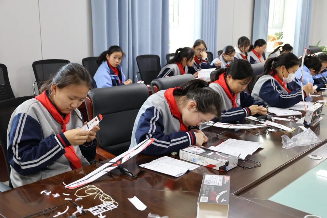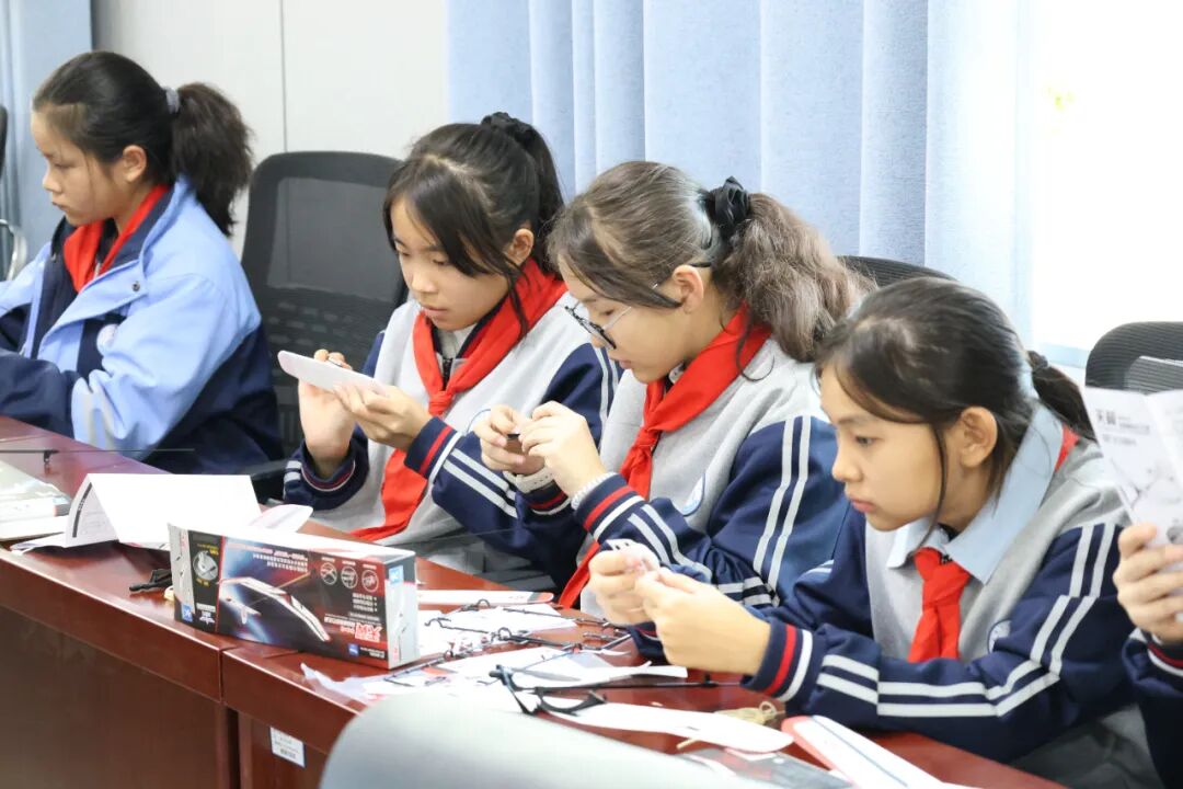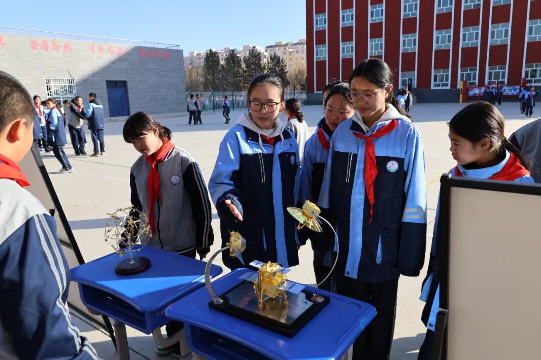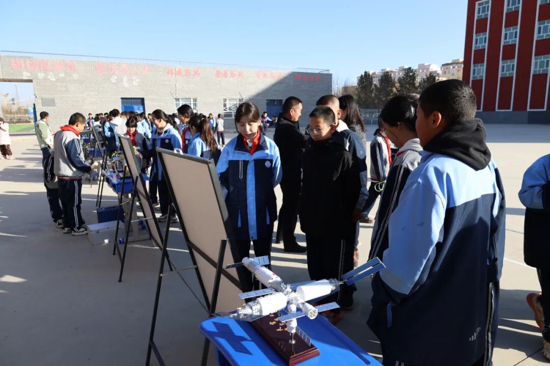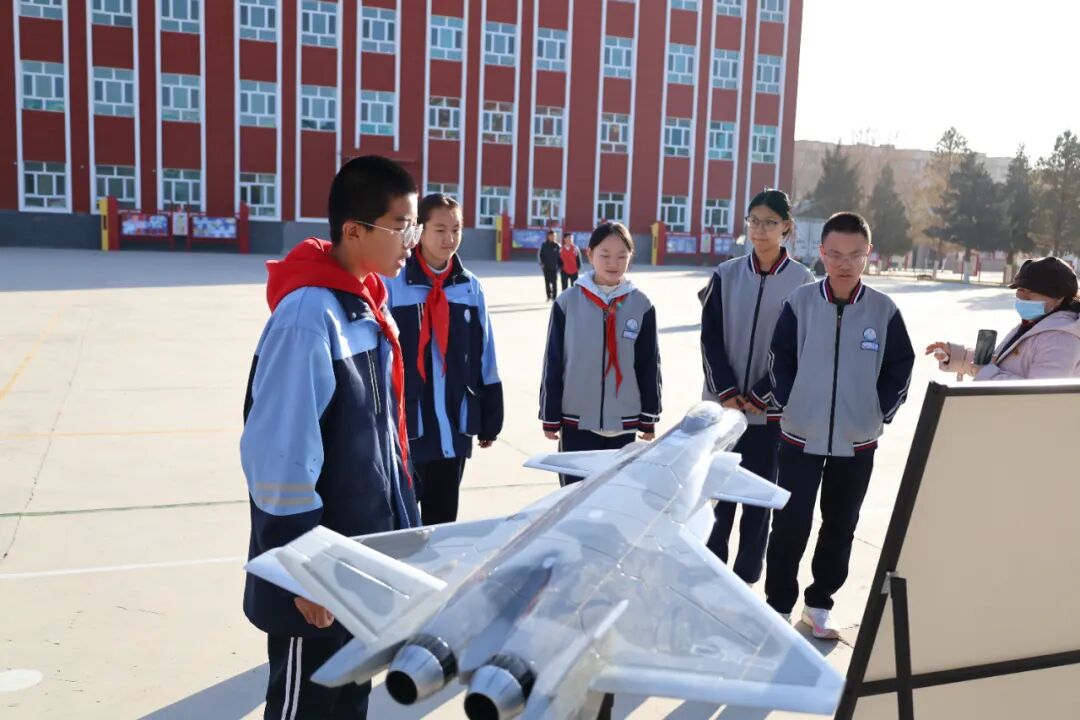 模型展览区高仿真模型整齐排列,从长征系列运载火箭到北斗导航卫星,从中国空间站到歼-20战斗机、C919大飞机,每一件模型都仿佛在诉说着科技的传奇。更令人惊喜的是,这些模型的讲解工作全部由本校学生担任。他们经过精心准备,自信满满地为同学们介绍模型的科技特点和研发背景,展现了新时代青少年的科学素养与表达能力。