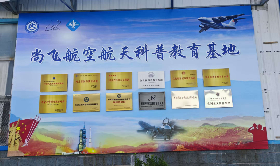 尚飞航空航天科普教育基地,坐落于石家庄市学府路,室内面积4000平,室外使用面积超1万平,基地以“传播航空航天文化,培育航空航天人才”为使命,涵盖科普大讲堂、波音737模拟客舱、静展飞机、发动机、空间站、火箭发射、模拟飞行、无人机等二十余个特色版块,可开展面向青少年的航空航天科普、教育培训、研学实践、爱国主义教育、冬夏令营等活动,同时可承接航空航天赛事、会展等多种业务。2021年成立至今,已成功推出“中国小机长”、“小小航天员”、“小小乘务员”、“大国小匠”、“航空科普校园公益行”等一批有影响力的品牌活动,线下线上累计覆盖人次约40万(其中2025年科普活动累计实现线下科普人数约50000人次,线上科普人数约50000人次),已逐步成为河北省规模最大、接待量最大的航空航天科普基地。