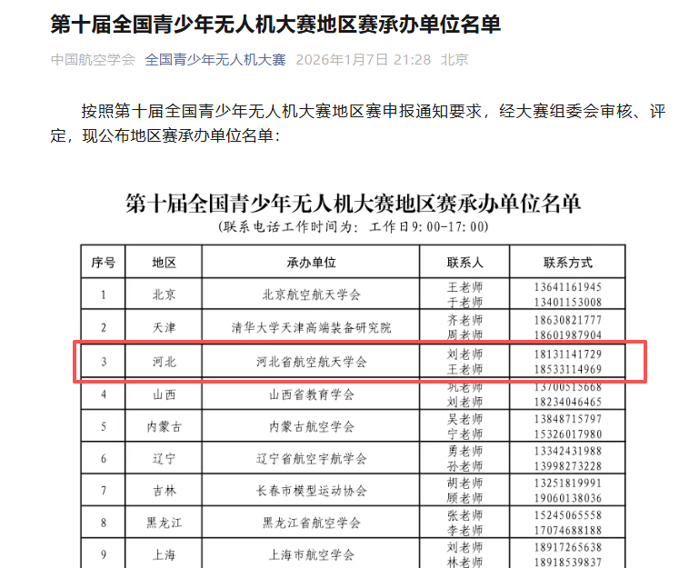 河北省航空航天学会获第十届全国青少年无人机大赛省赛承办资格
