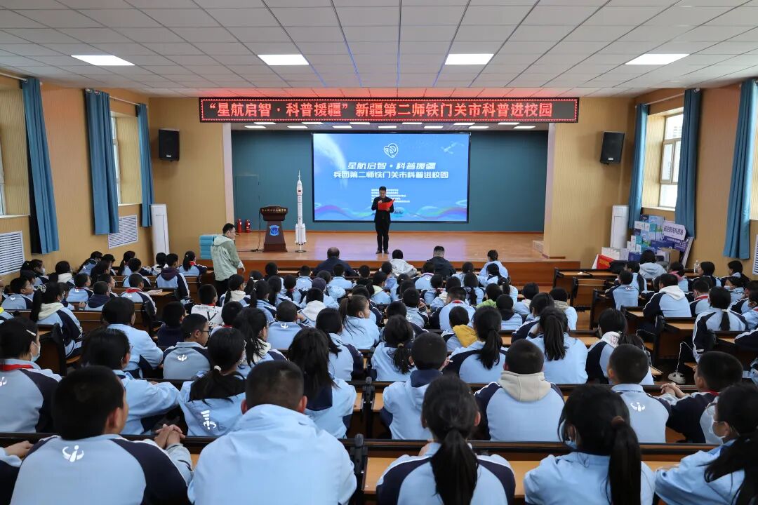11月18日,“星航启智 科普援疆”兵团第二师铁门关市科普进校园活动在二十七团中学举行。本次活动由河北省科学技术协会援助,河北省航空航天学会执行,兵团第二师铁门关市科学技术协会承办,第二师铁门关市教育局支持,巴州聆壹阁文化传媒有限责任公司协办。活动旨在为边疆学子搭建接触前沿科技、开阔科学视野的平台,点燃青少年的科学探索热情,让科技之光照亮边疆教育之路。通过多方协作,共同推动了科普资源向边疆地区倾斜